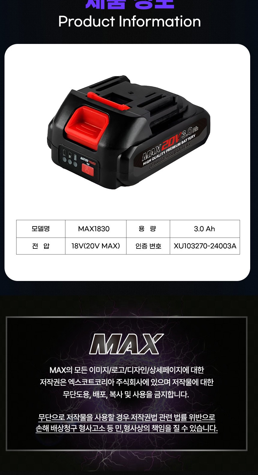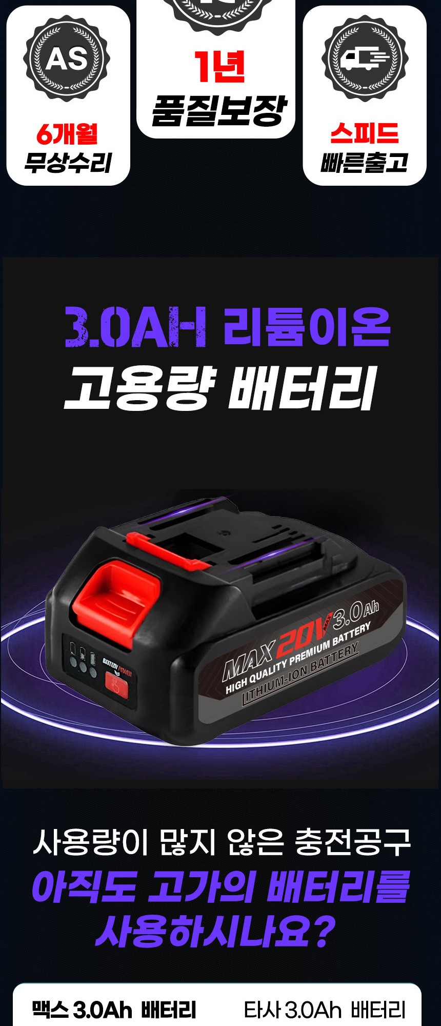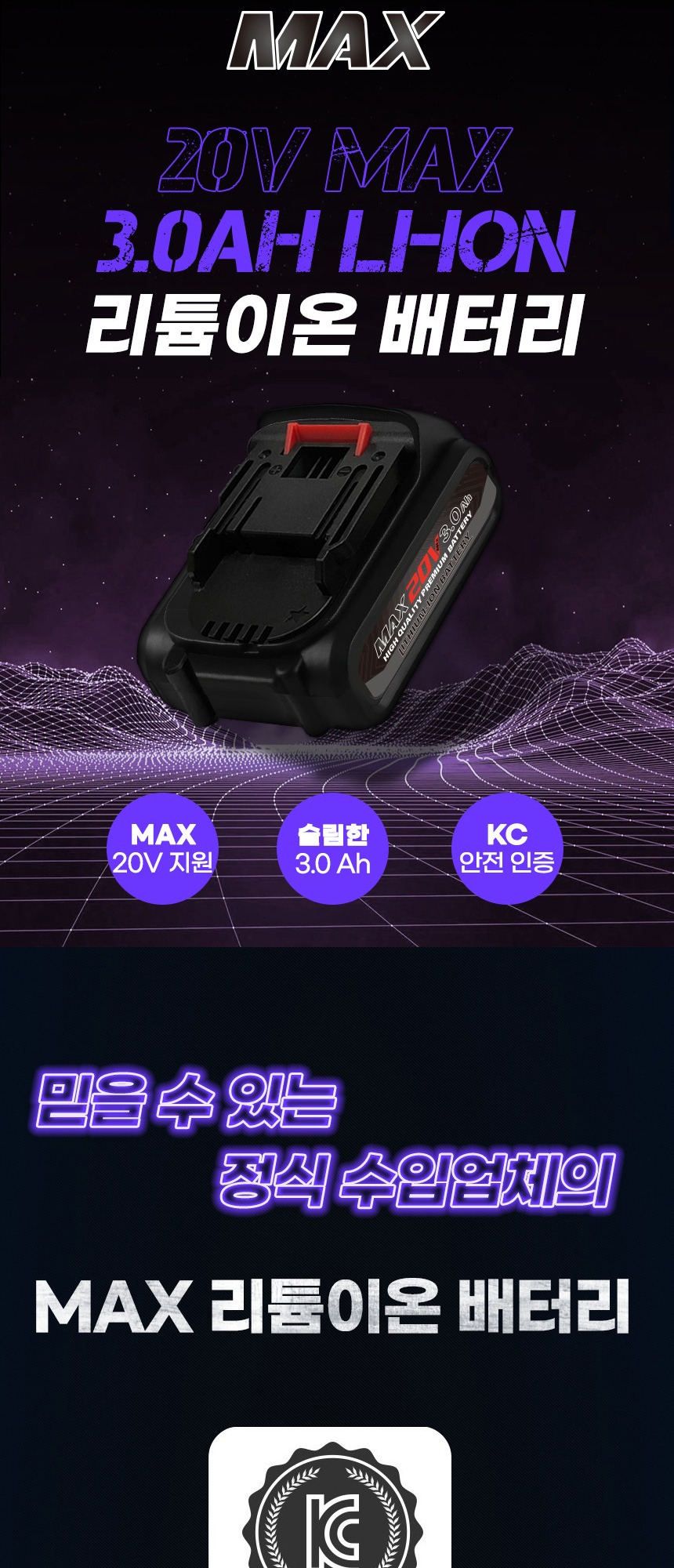 전압 : 18V (20V MAX) 용량 : 3.0Ah