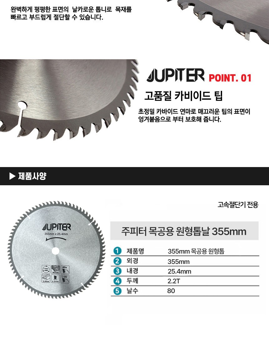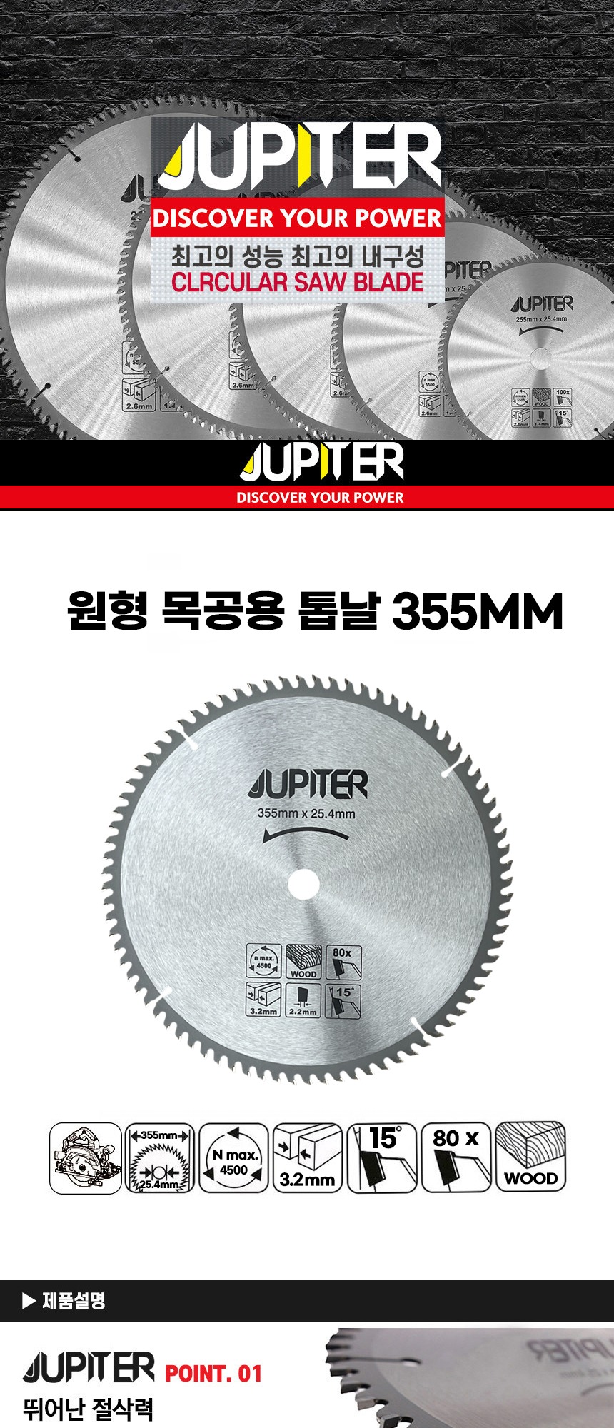 외경 : 355mm 내경 : 25.4mm 두께 : 2.2T 날수 : 80