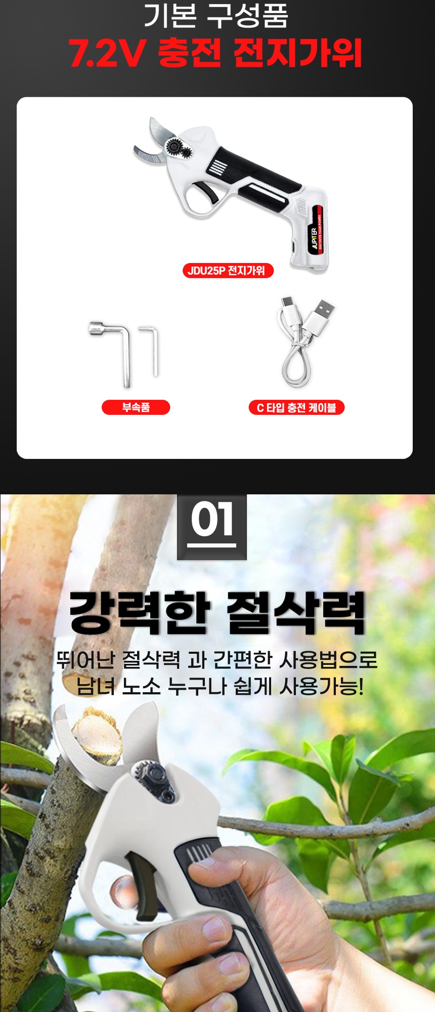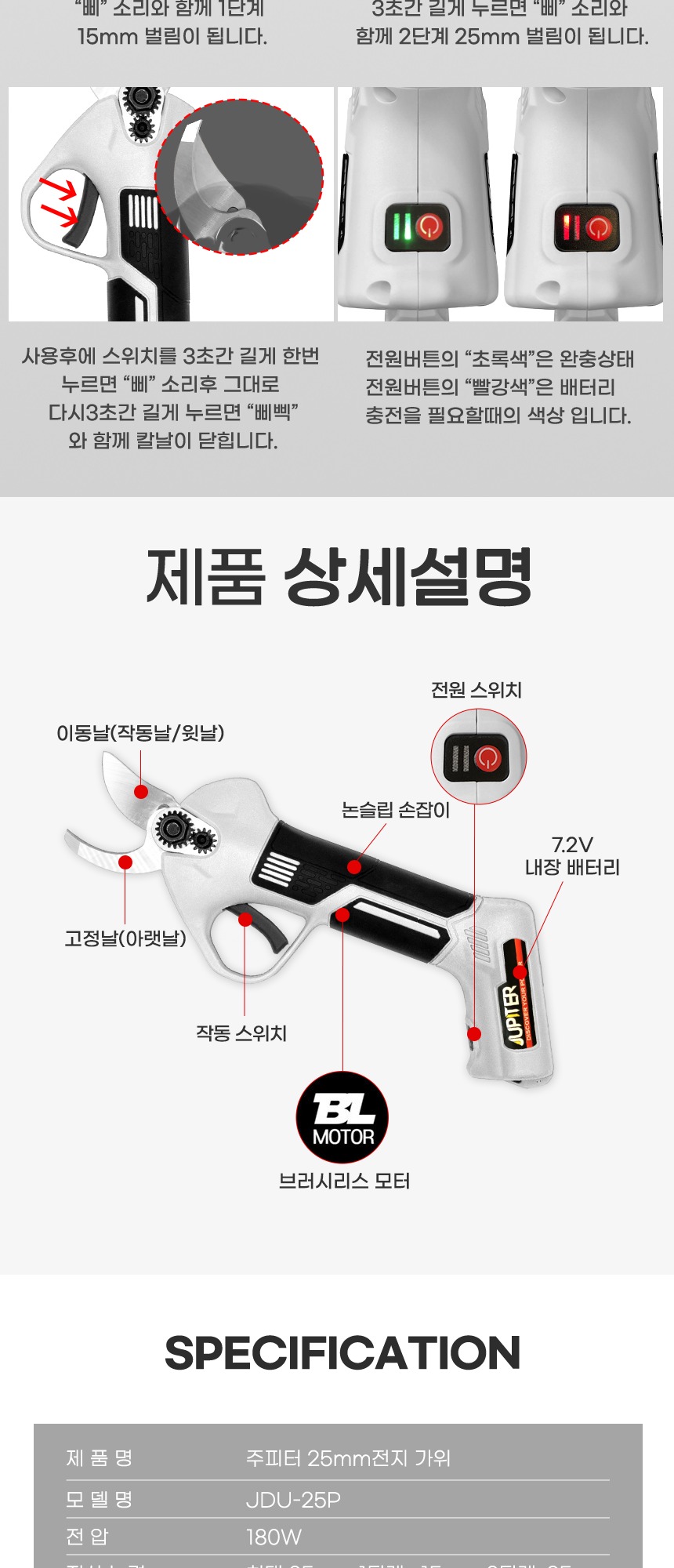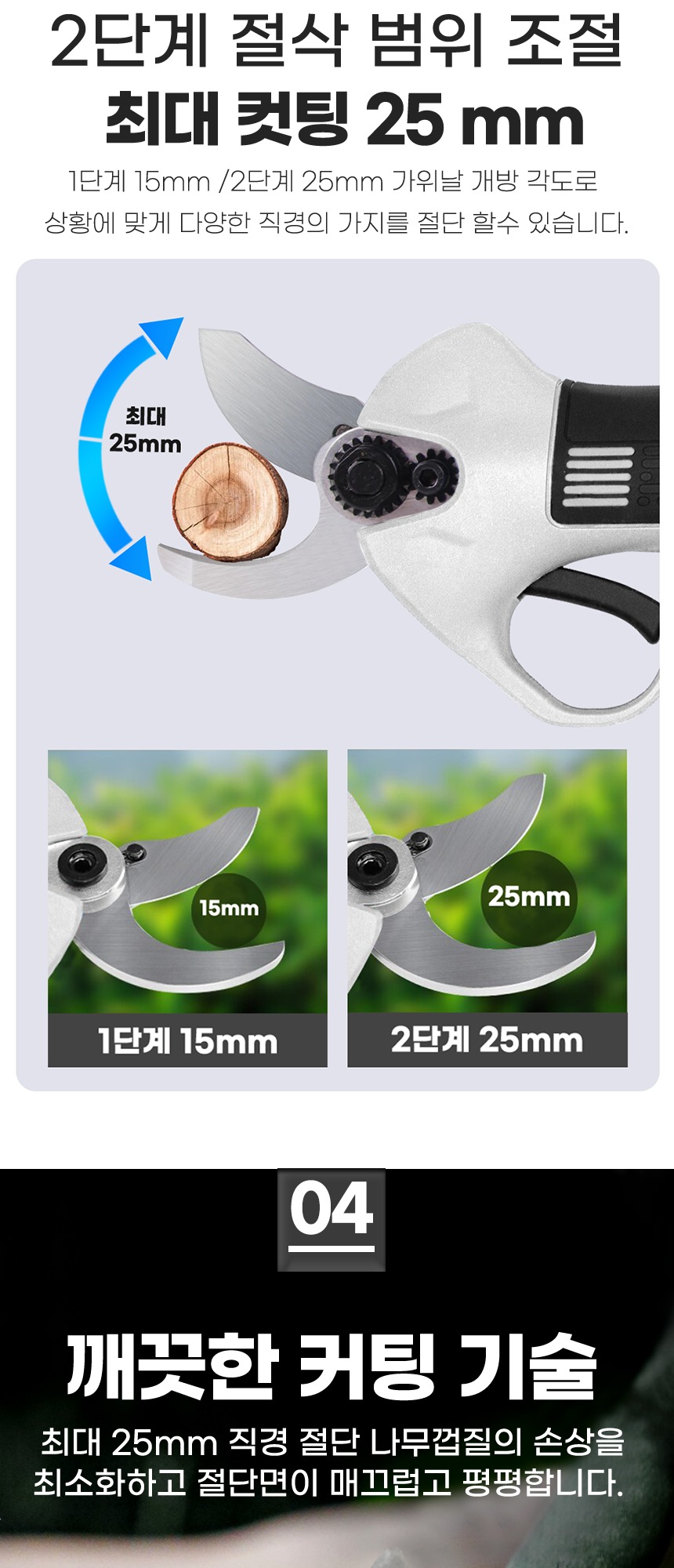 절삭 능력 : 1단계 – 15mm 2단계 – 25mm