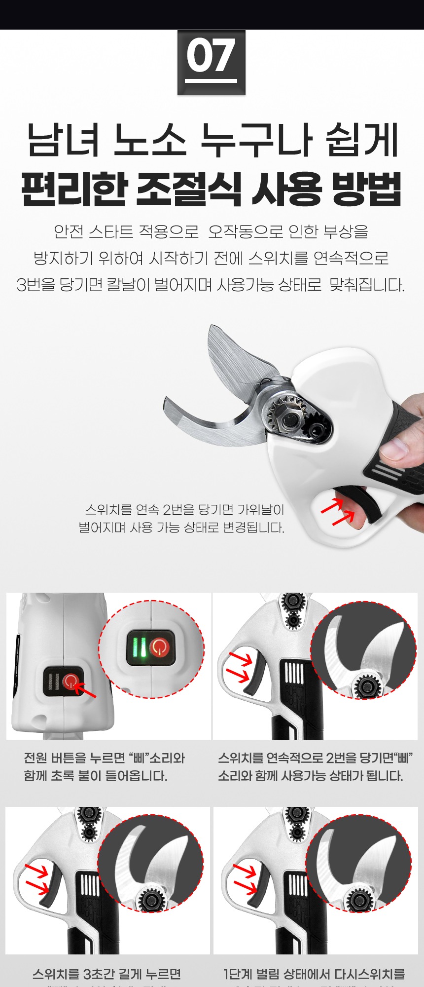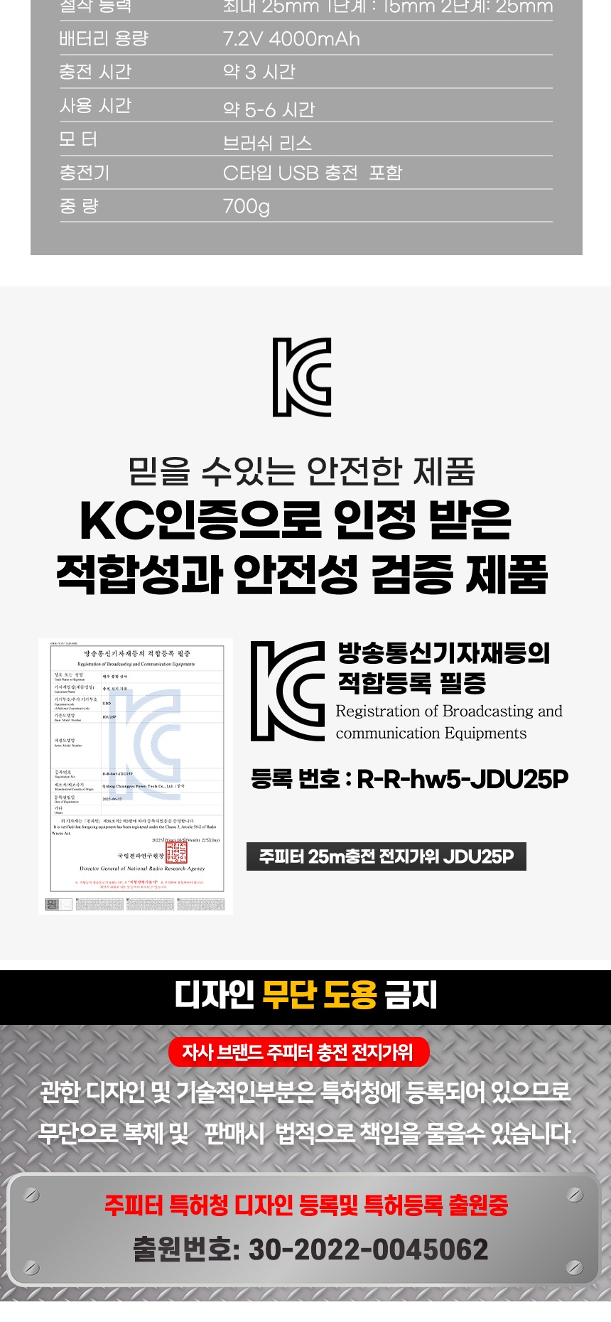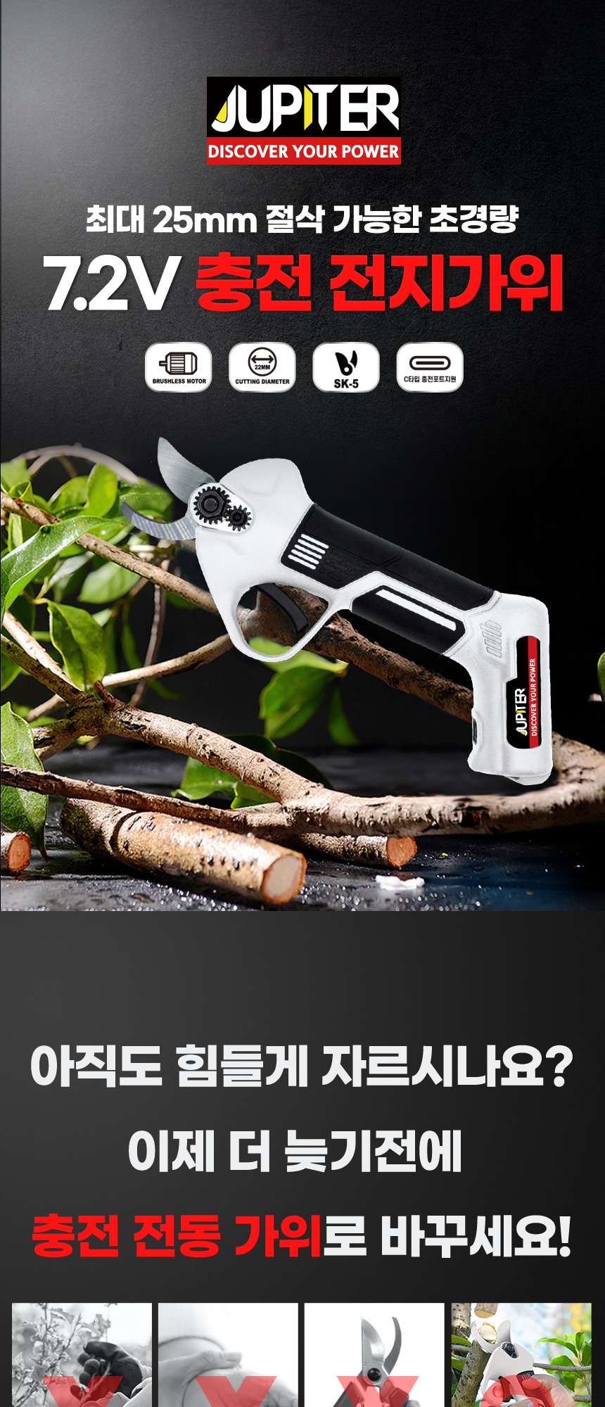 절삭 능력 : 1단계 – 15mm 2단계 – 25mm