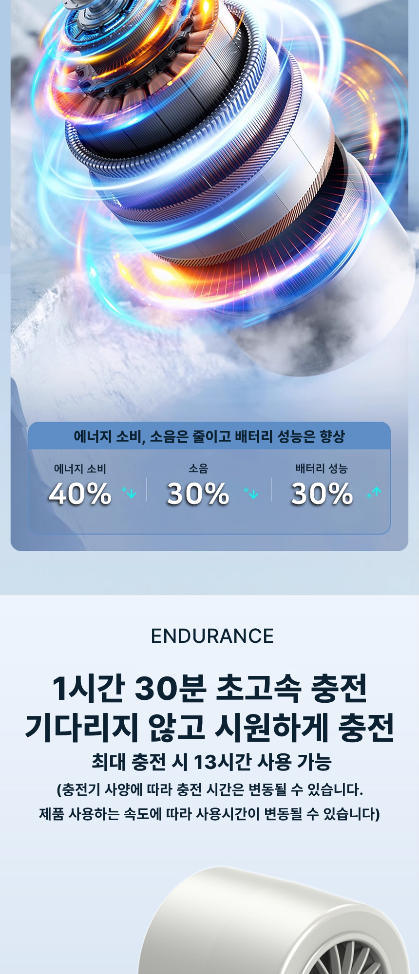 사용시간 : 약 13시간 (완충 시, 사용 속도에 따라 다름)
