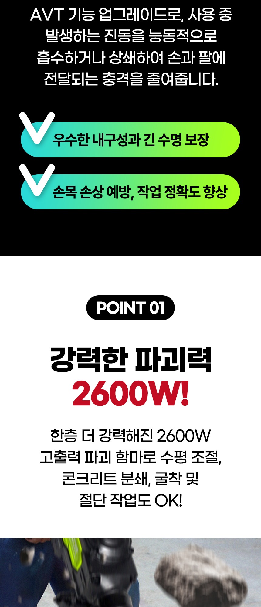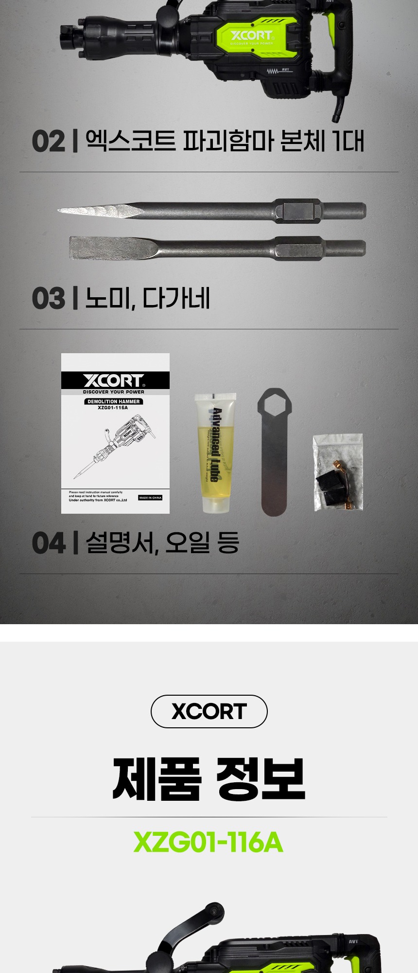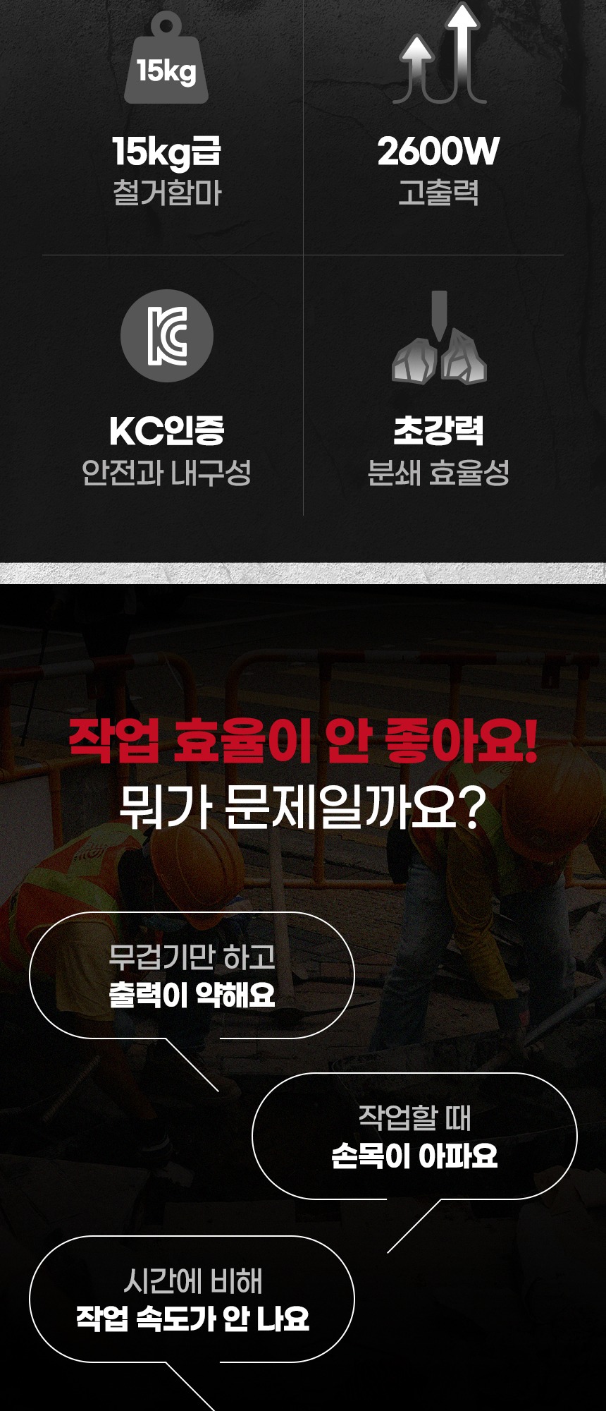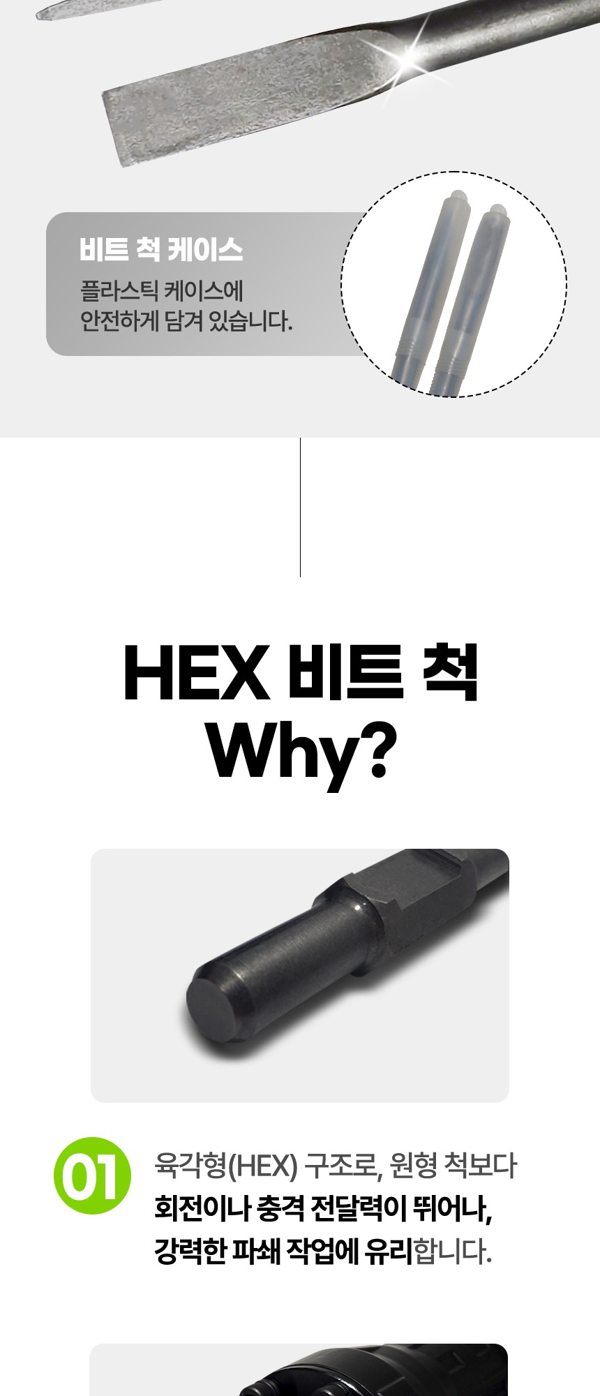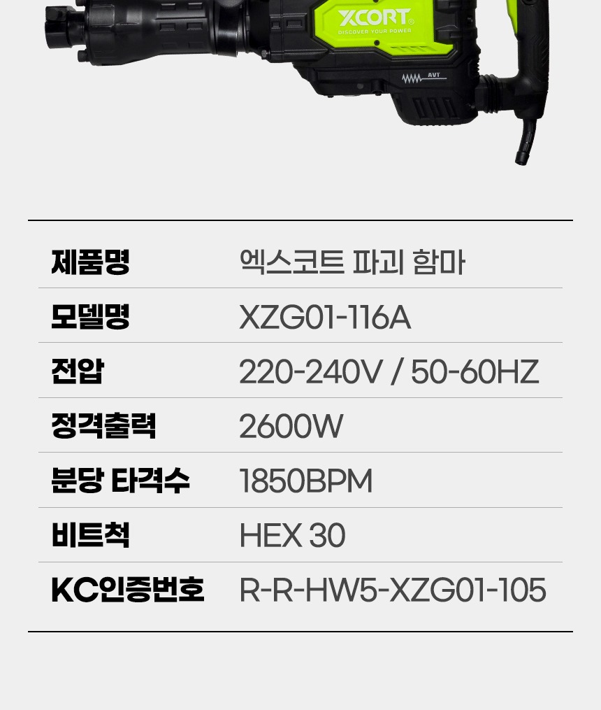 전압 : 220-240V / 50-60Hz 정격출력 : 2600W 분당타격수 : 1850bpm 비트척 : HEX 30